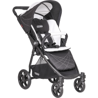 Jsem propracovaný, snadno ovladatelný sporťák. Jezdí se se mnou tak snadno, že stačí jen jedna ruka. A to i na skládání. Mám pevný, voděodolný potah, který je přesto měkoučký a příjemný. Pro spinkání mám sklopnou opěru zad, kdyby nás trápilo sluníčko, mohu prodloužit stříšku a kdyby došlo na nějkou kapku, voděodolný potah tě udrží vsuchu.