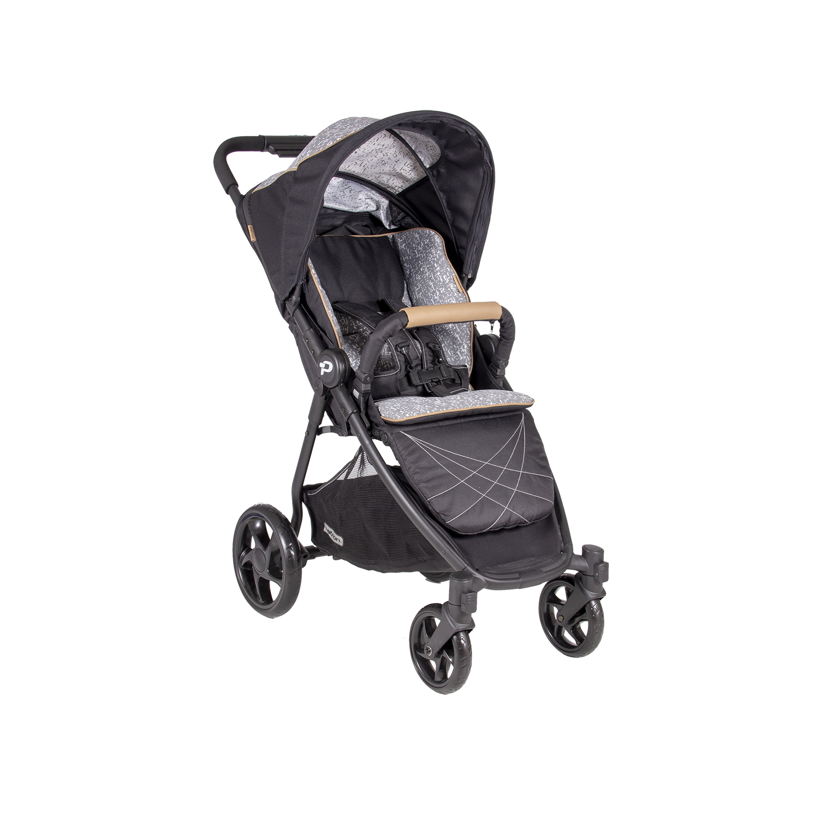 Jsem propracovaný, snadno ovladatelný sporťák. Jezdí se se mnou tak snadno, že stačí jen jedna ruka. A to i na skládání. Mám pevný, voděodolný potah, který je přesto měkoučký a příjemný. Pro spinkání mám sklopnou opěru zad, kdyby nás trápilo sluníčko, mohu prodloužit stříšku a kdyby došlo na nějkou kapku, voděodolný potah tě udrží vsuchu.