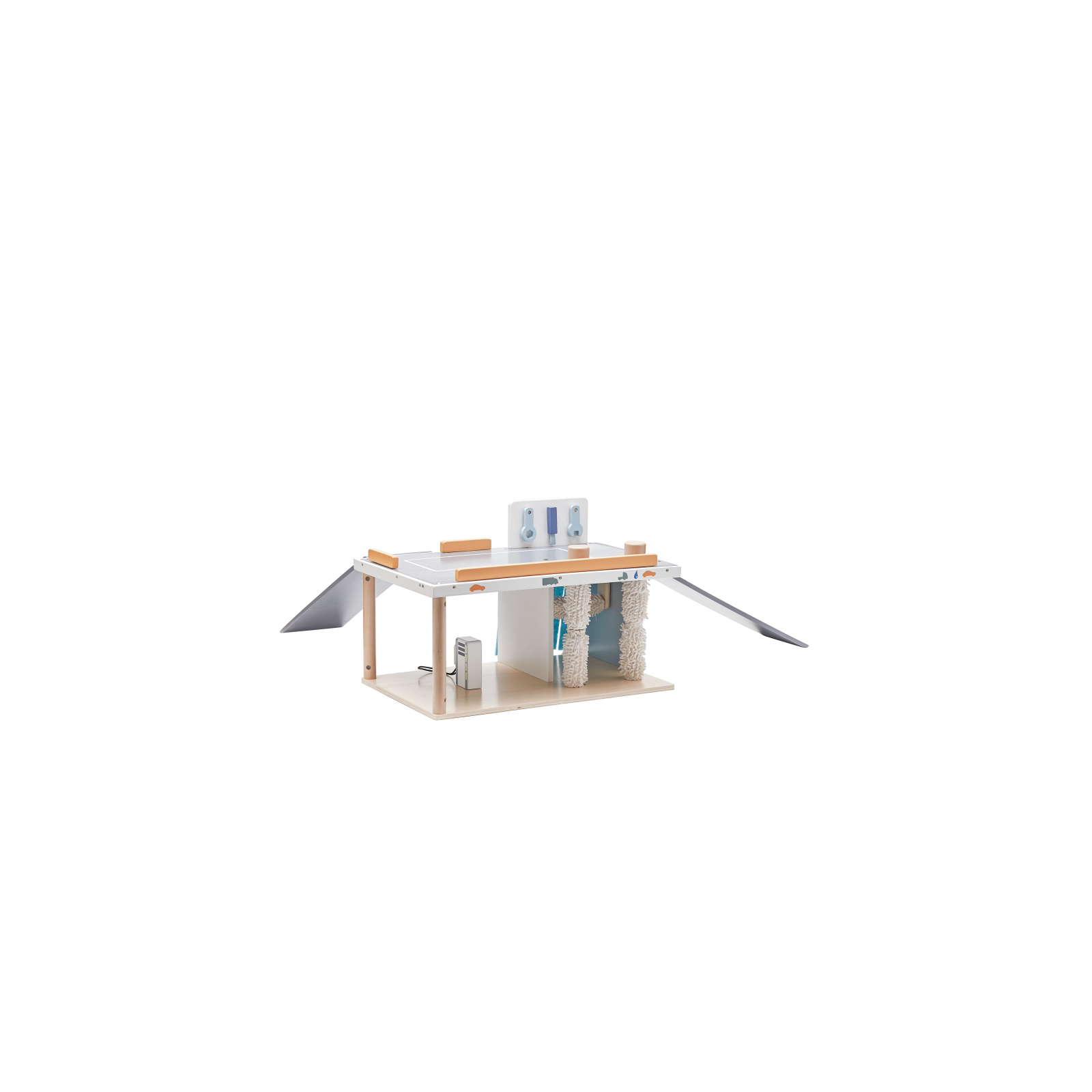 Dřevěný autoservis, myčka a benzínová stanice je ideální pro hru s autíčky a dalšími doplňky ze série Aiden. Servis s pomocí 3 nástrojů auto opraví, myčka s rotačními kartáči auto umyje a benzínová stanice s tankovací pistolí doplní do auta palivo. Tankovací pistole pasuje do otvorů v autíčkách ze série Aiden. Autoservis můžete doplnit o další výrobky série dřevěných hraček Aiden a vytvořit tak v dětském pokoji město se silnicemi, garáží, parkovištěm atd. Rozměry: 28,5 x 43,5 x 20 cm. Obsahuje malé části, nevhodné pro děti do 3 let.
