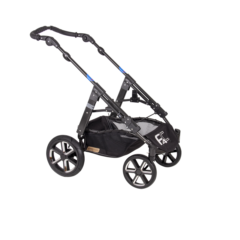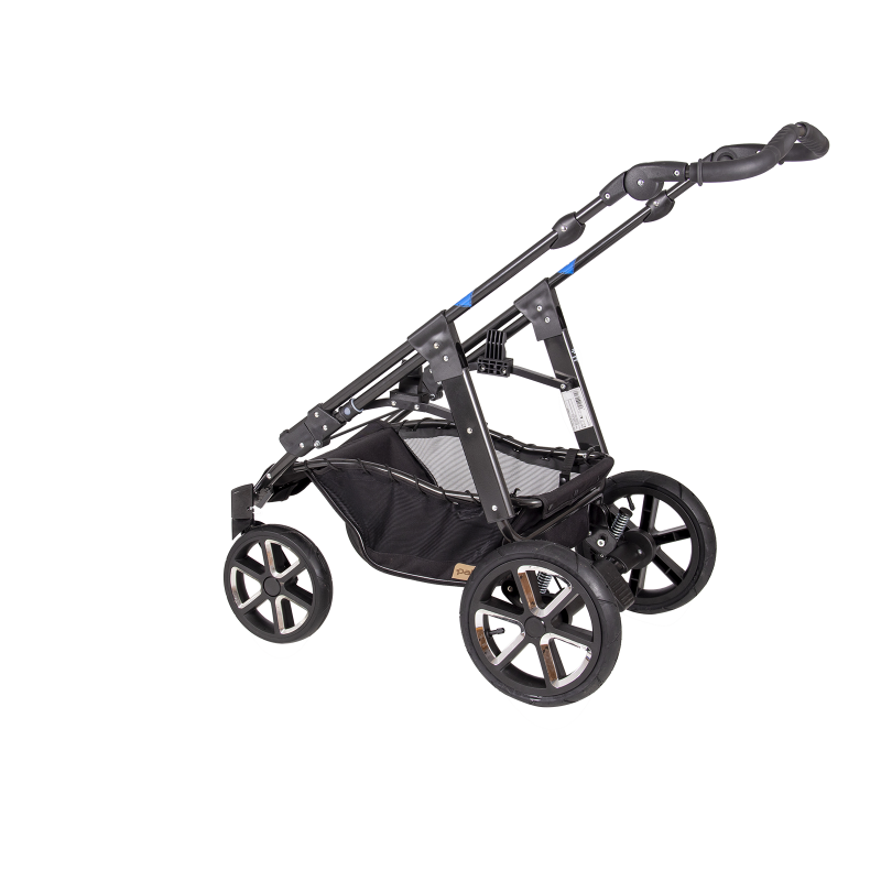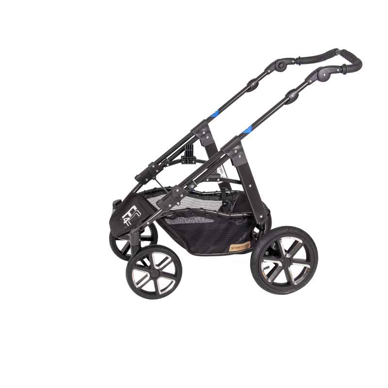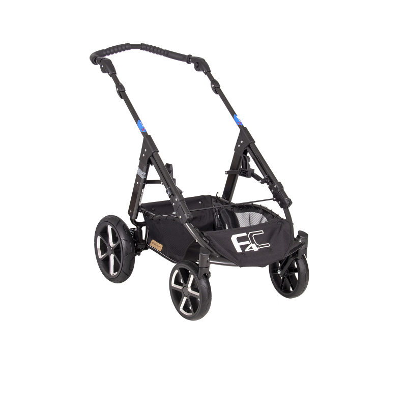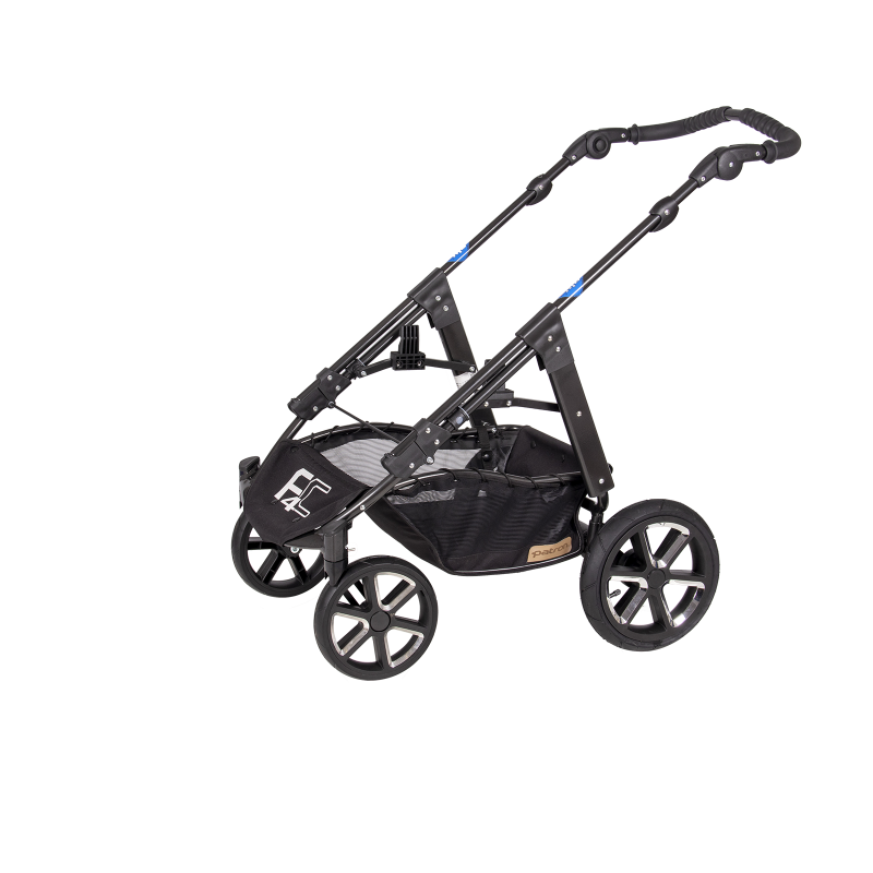 jsem celohliníkový skládací 4-kolový ALUX podvozek, mám nastavitelnou tuhost odpružení, standardní nožní brzdový systém, úhlově nastavitelné vodítko,
