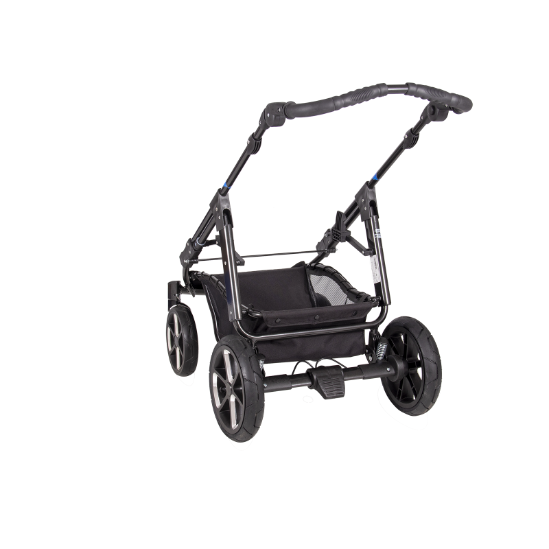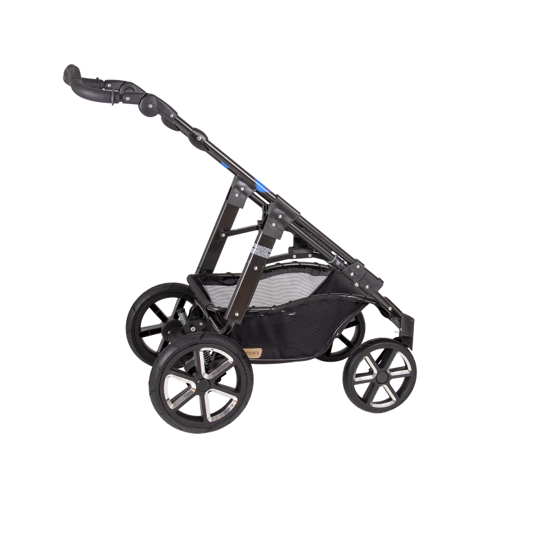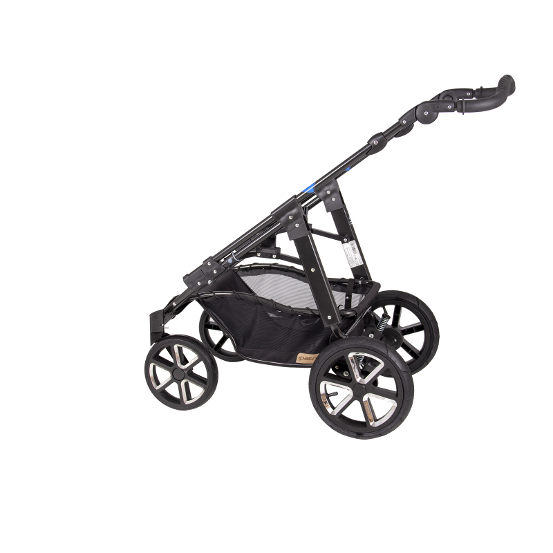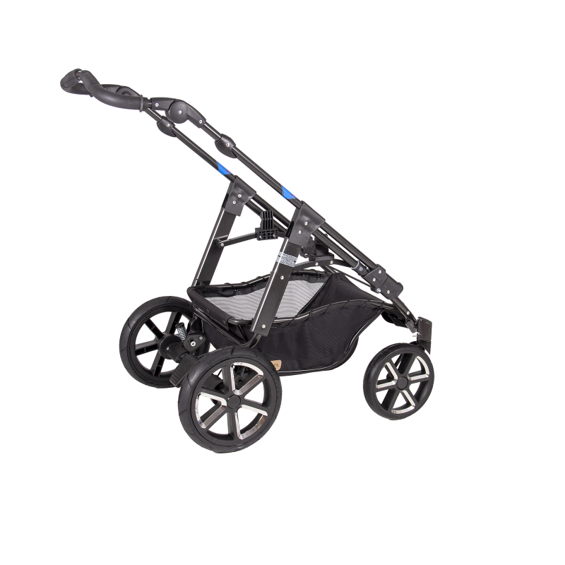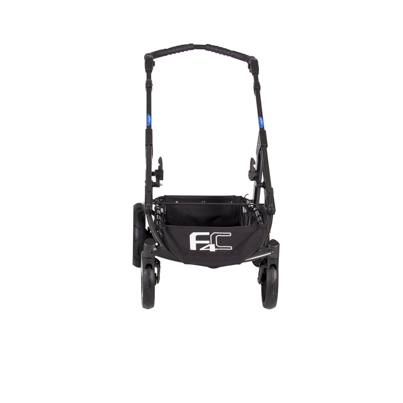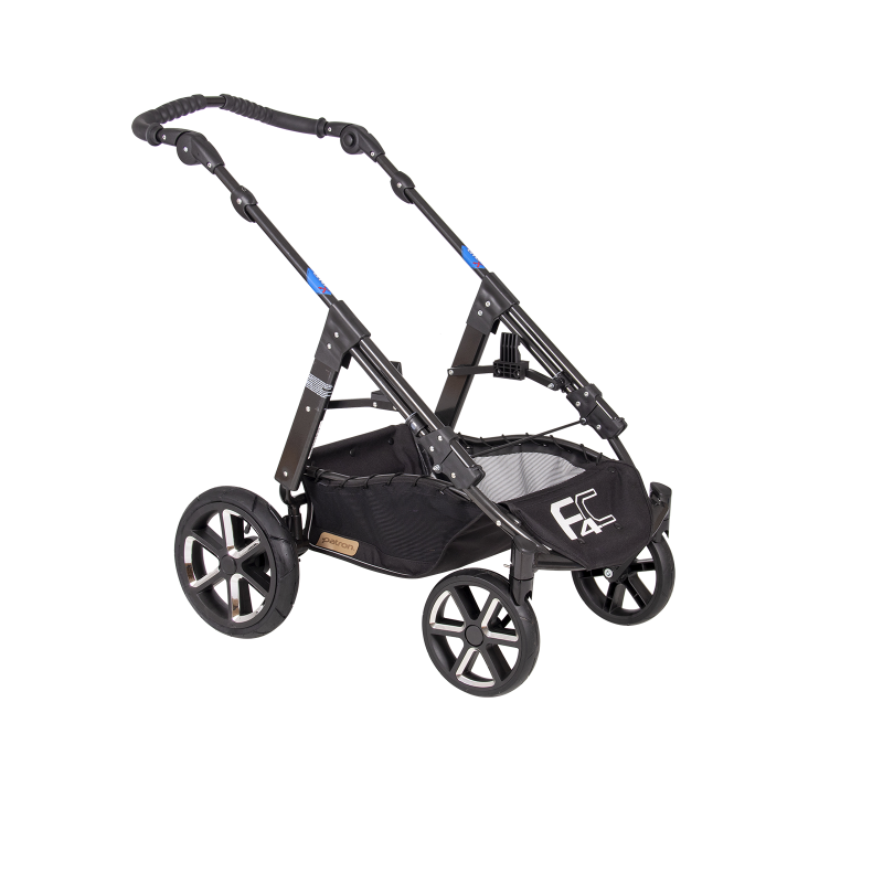 jsem celohliníkový skládací 4-kolový ALUX podvozek, mám nastavitelnou tuhost odpružení, standardní nožní brzdový systém, úhlově nastavitelné vodítko,
