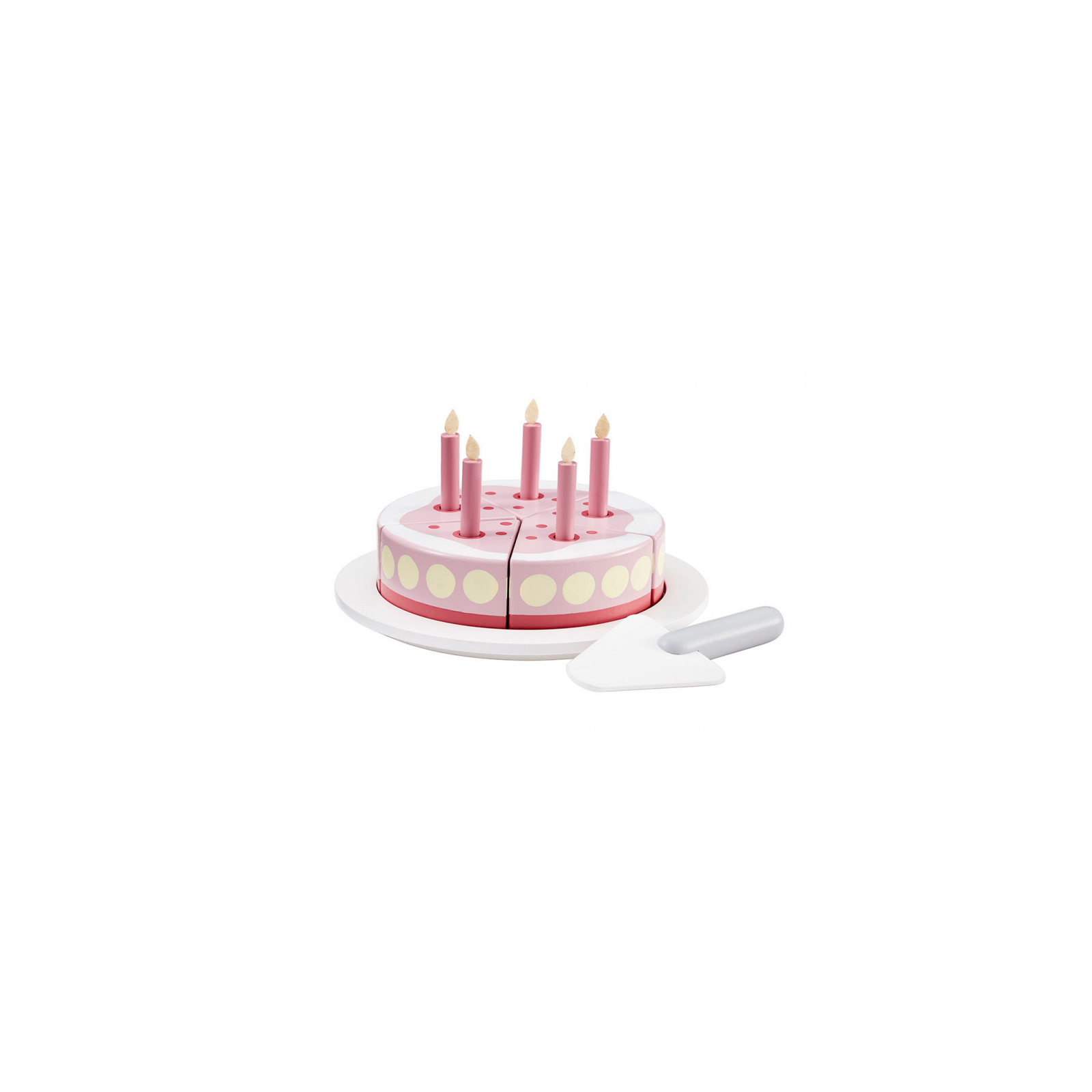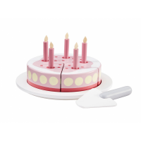 Narozeninový dort s vyjímatelnými svíčkami v dřevěném provedení pro dětskou oslavu. Dort je tvořen pěti kousky, spojenými suchým zipem. Součástí dortu je servírovací talíř a nůž.  Dort je součástí ucelené kolekce dřevěných hraček Kids Concept Bistro. Průměr dortu: 18,5 cm Vhodné pro děti od 3 let.