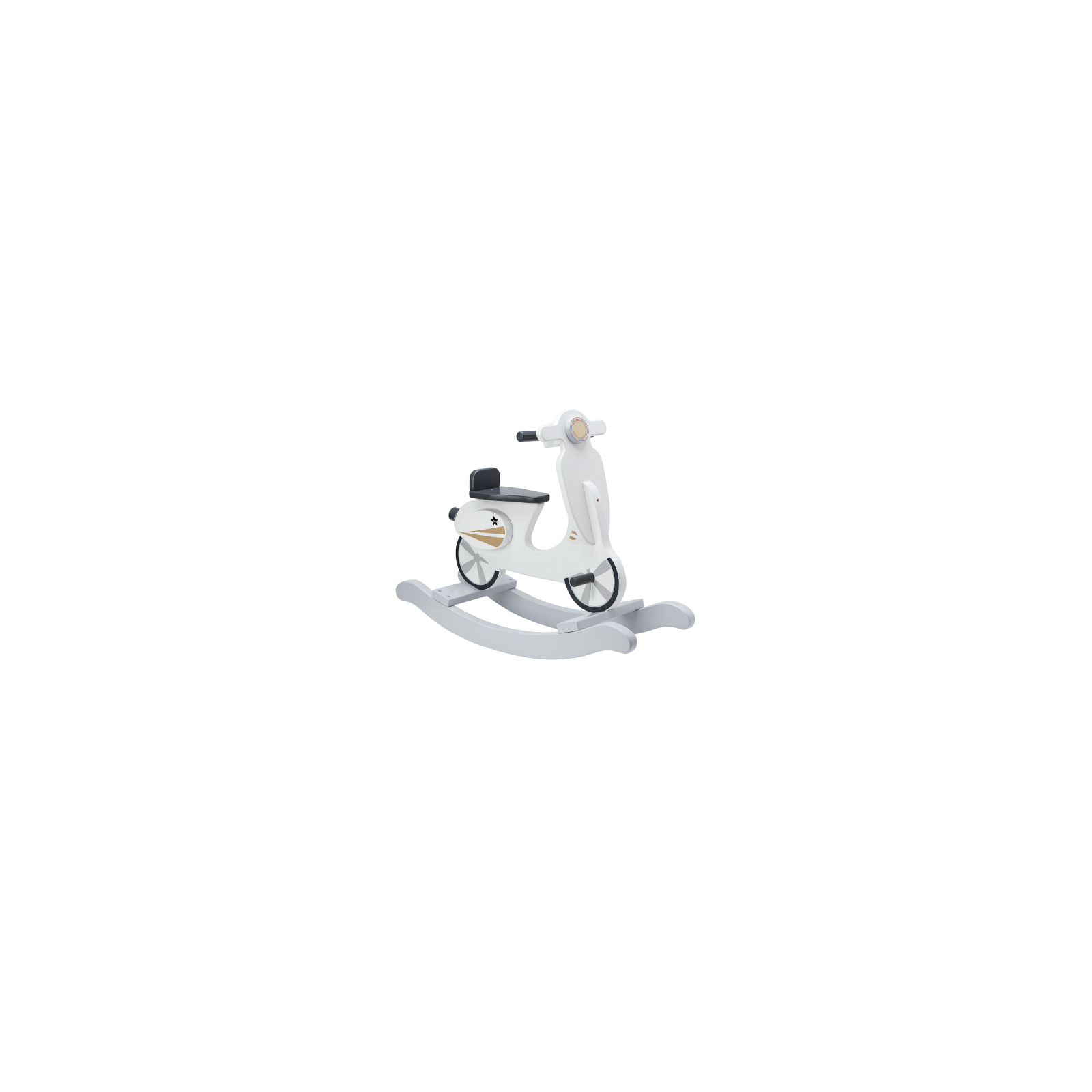 Dřevěný houpací skútr v krásném designu má protiskluzové podložení a robustní držadla pro pevné držení. Rozměry: 73 x 24 x 53 cm