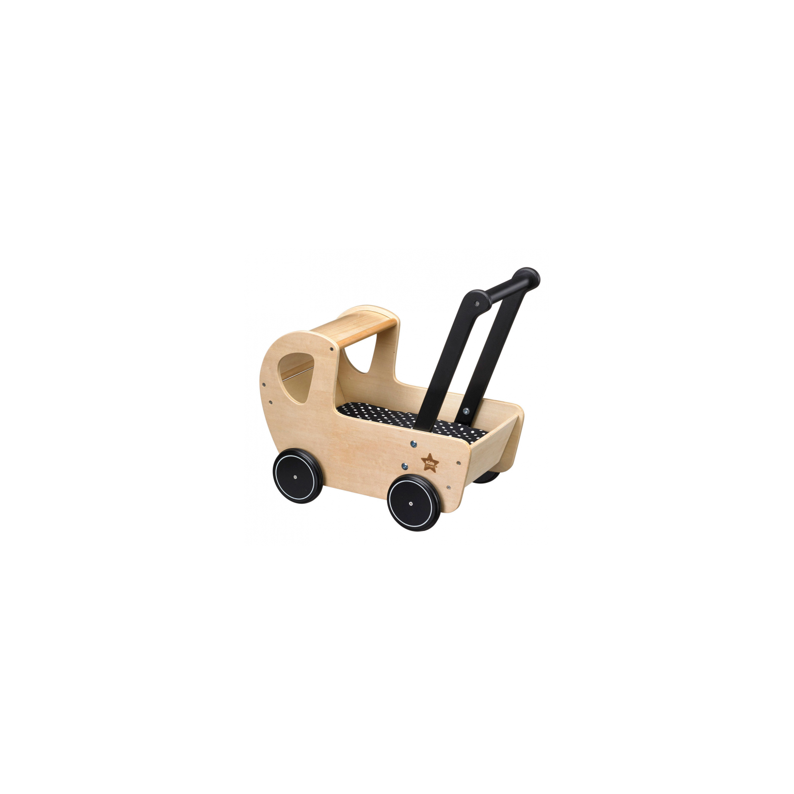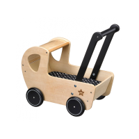Kočárek v originálním dřevěném provedení s matrací a peřinkou v černé barvě s bílými puntíky. Rukojeť kočárku je ve výšce 42 cm. Kočárek je součástí kolekce hraček Kids Concept Neo, inspirovaných dobou kamennou. Rozměry: 42 x 26,5 x 42,5 cm Vhodné pro děti od 18 měsíců.