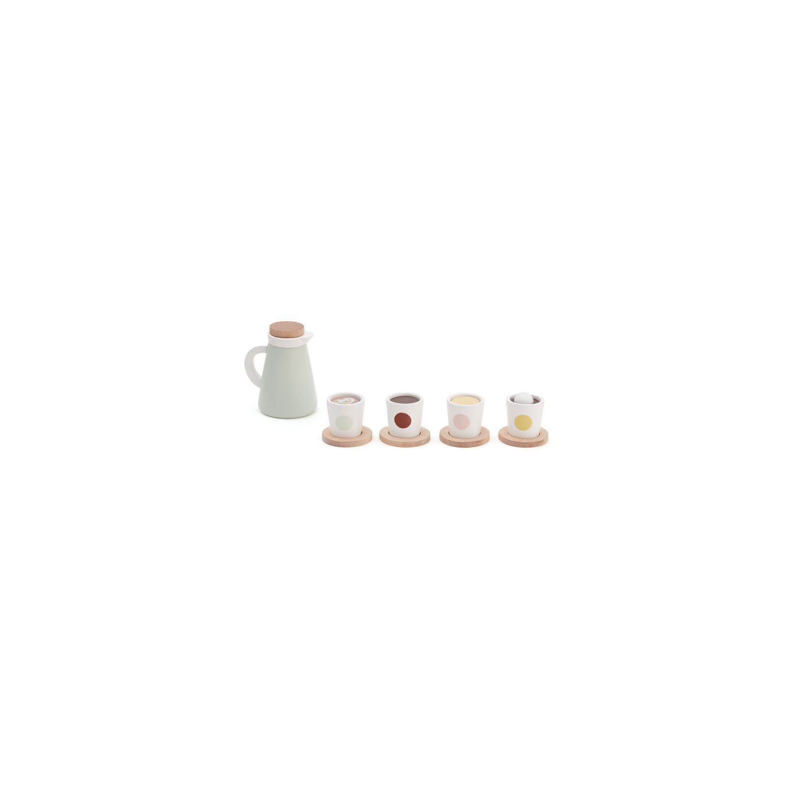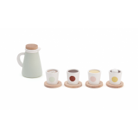 Konvička se čtyřmi šálky a podšálky pro stylové servírování kávy či čaje při dětské party. Konvička s šálky je součástí ucelené kolekce dřevěných hraček Kids Concept Bistro. Rozměry: 16 x 8,5 x 20 cm Vhodné pro děti od 3 let.