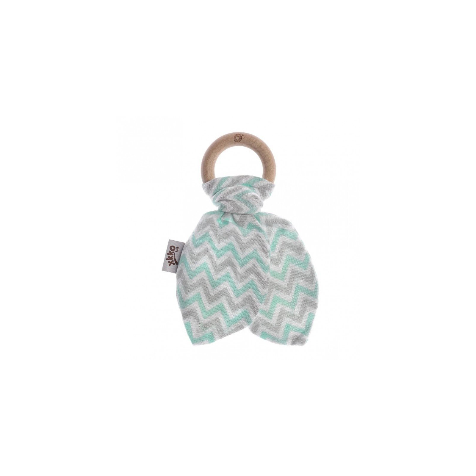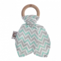 Péče: Před prvním použitím dřevěný kroužek omyjte. Před prvním použitím textilní část vyperte. Perte pouze textilní část. Textilní část perte na 30°C. Po každém použití kousátko omyjte a nechte důkladně oschnout. Mokré kousátko nevystavujte přímému slunci.
