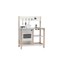 Stylová dřevěná kuchyňka je snem každého malého kuchaře či kuchařky. Součástí kuchyňky je pečící trouba s možností otevření, sporák se dvěma vařiči, hodiny, dřez, hrnce, pánve a další kuchyňské nástroje. Kuchyňka je součástí ucelené kolekce dřevěných hraček Kids Concept Bistro. Rozměry: 73 x 55 x 30 cm Vhodné pro děti od 3 let.