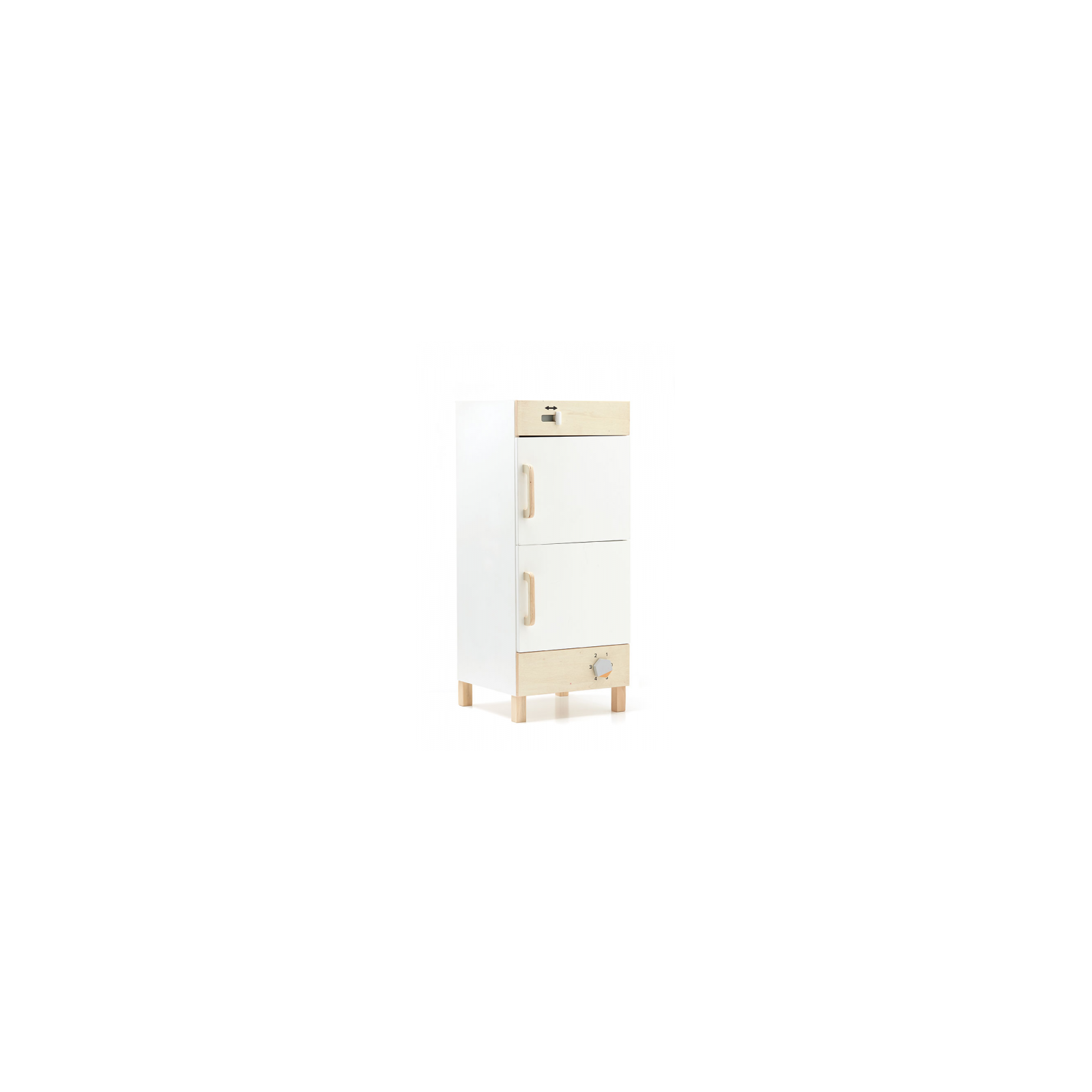Stylová dřevěná lednice s mrazákem je je nezbytnou součástí dětské kuchyně. Lednice je vybavena vnitřními policemi, držákem na vejce i přihrádkou na láhve. Ideální doplněk k dřevěné kuchyňce Kids Concept (kuchyňka se prodává samostatně). Lednice s mrazákem je součástí ucelené kolekce dřevěných hraček Kids Concept Bistro. Rozměry: 73 x 30 x 30 cm Vhodné pro děti od 3 let.