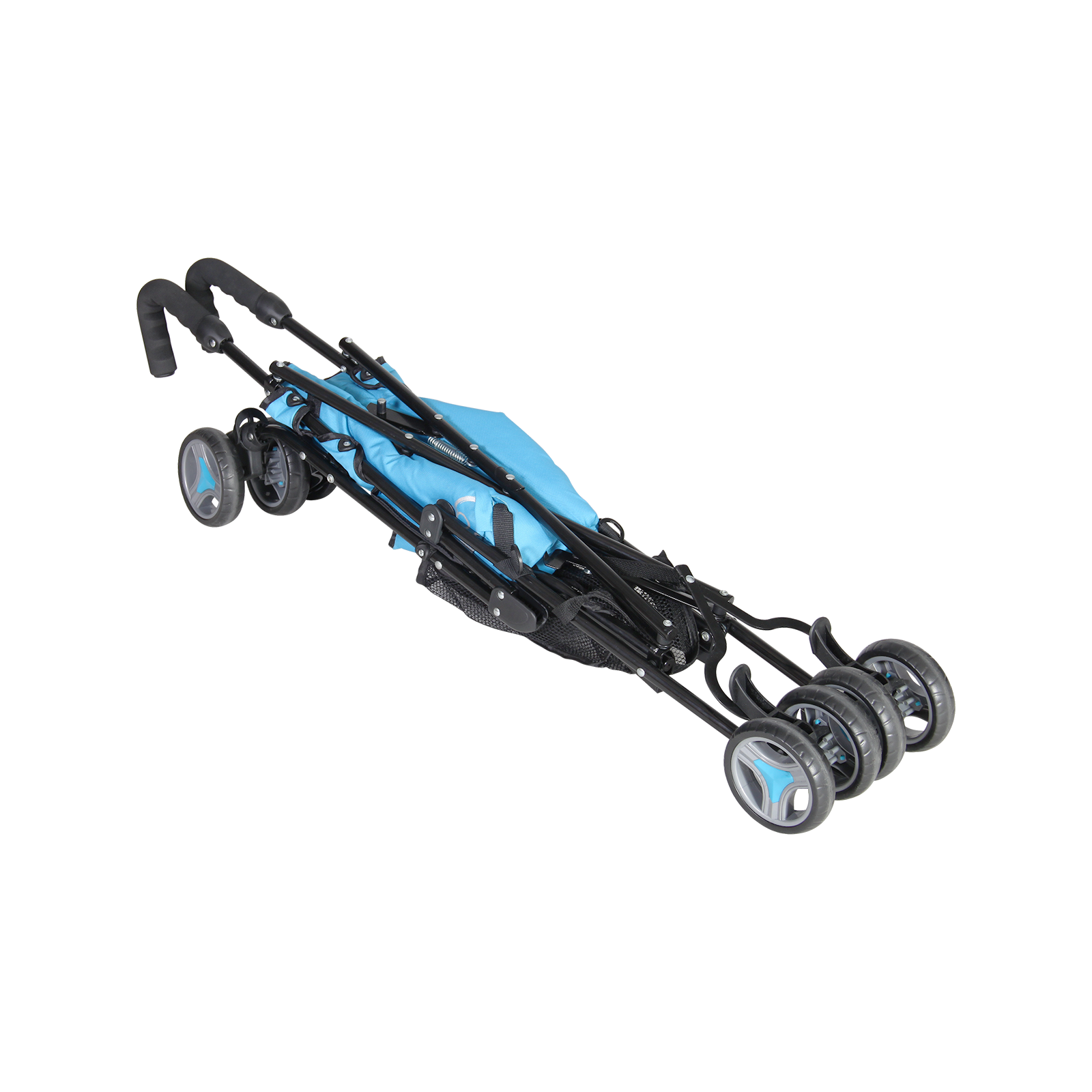 Jsem rychlotransportní kočárek, vhodný třeba pro cestování do zahraničí nebo na výlet do ZOO. Mojí předností je vyjímečná lehkost, hodím se i jako náhradní kočárek třeba k prarodičům mého malého pasažéra.