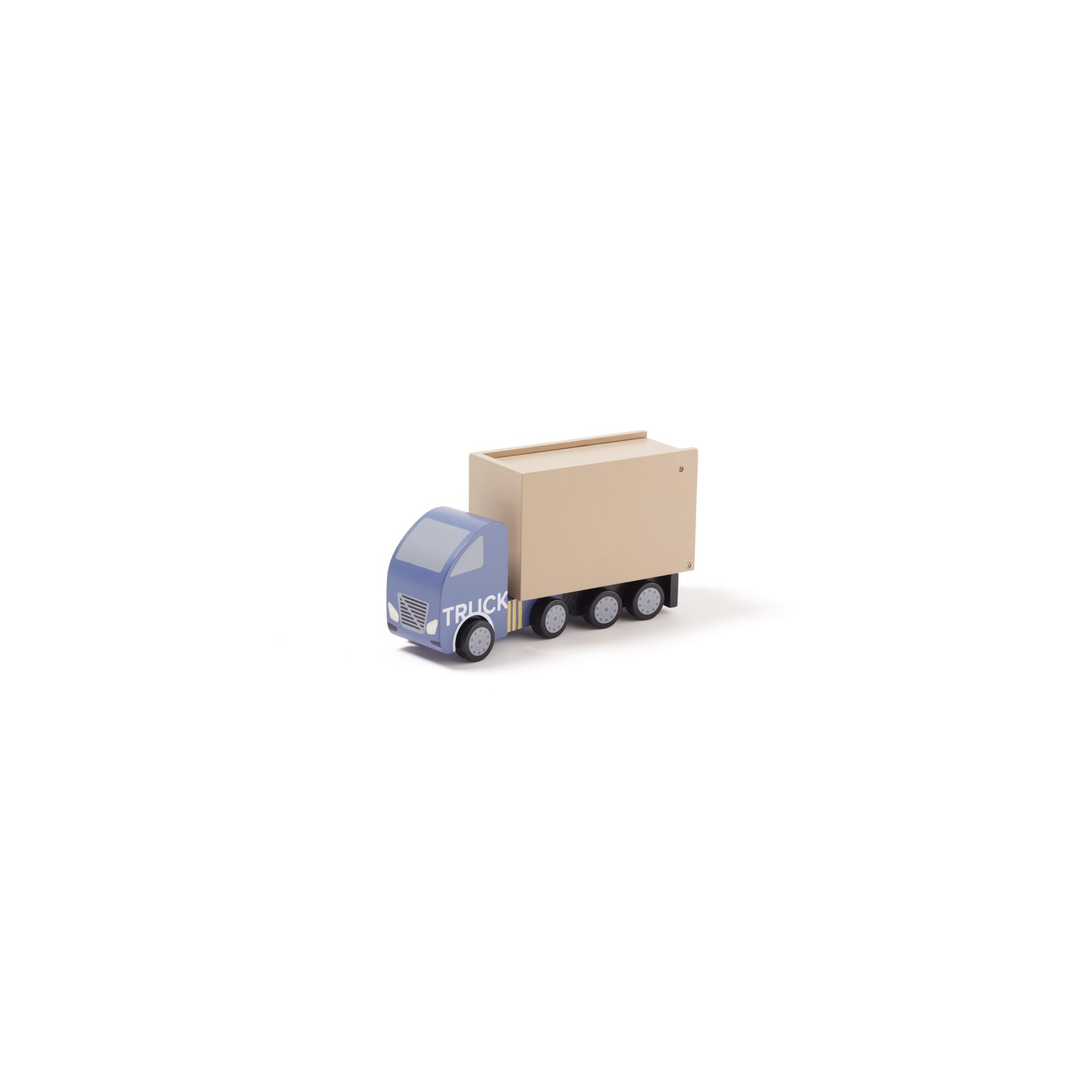 Dřevěný náklaďák v krásném designu má tvar pro snadné uchopení. Návěs má posuvnou otevírací horní část pro naložení nákladu a výklopnou plošinu vzadu, po které do něj např. mohou vjíždět autíčka. Návěs je možné od tahače odpojit. Náklaďák můžete doplnit o další výrobky ze série dřevěných hraček Aiden a vytvořit tak v dětském pokoji město se silnicemi, garáží, parkovištěm, servisem, benzínovou pumpou atd. Rozměry: 10 x 31 x 17 cm Vhodné pro děti od 12 měsíců.