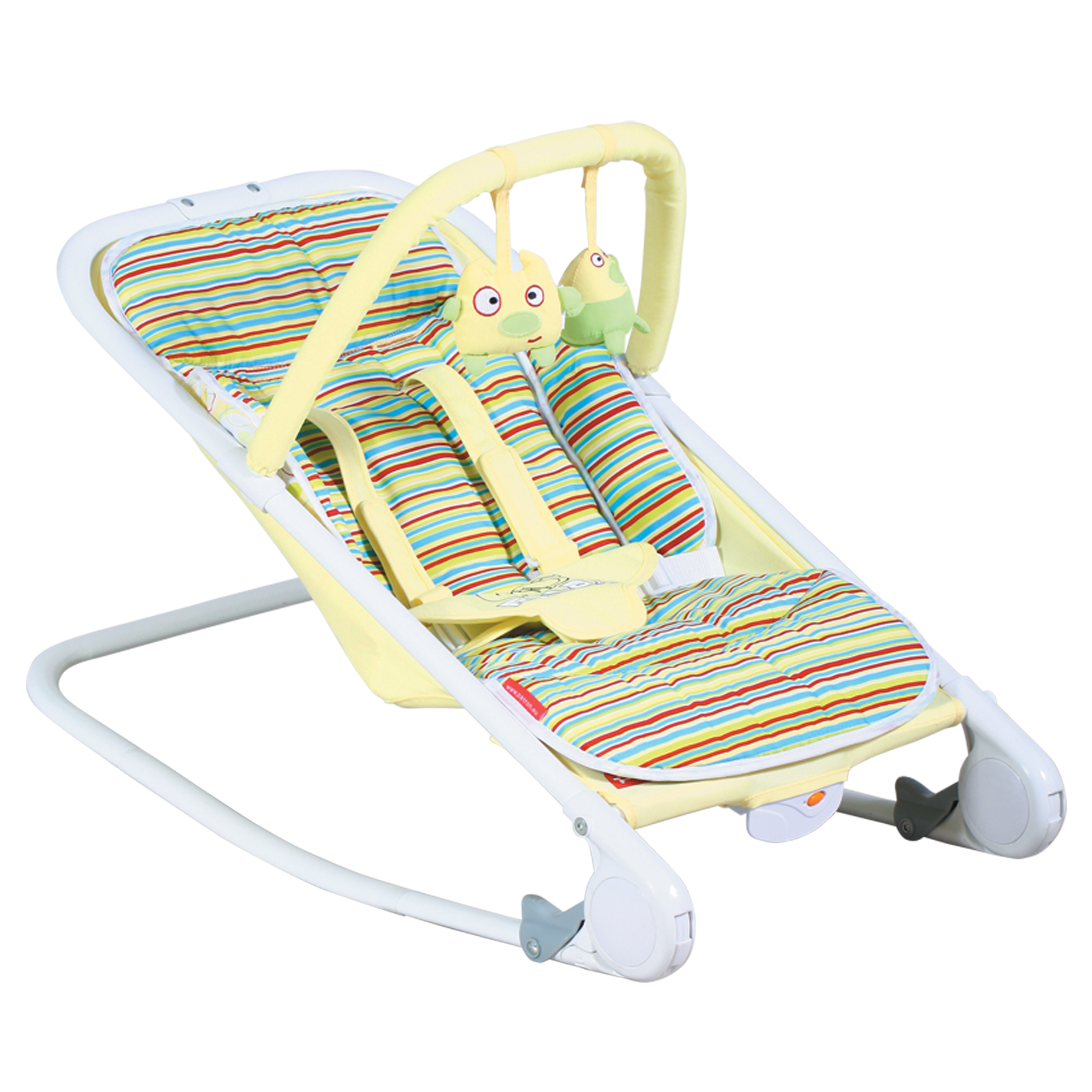 Lehátko pro Vaše miminko, je určené od narození nebo do 18kg. Je velmi pohodlné a prostorné. Vaše ratolest se bude cítit, jako v bavlnce. K zabavení slouží hrazdička s dvojicí hraček. Polohování slouží pro všestranné využití, v lehátku může Vaše ratolest spinkat i ochutnat svoje první lžičky pochutin. Lehátko je vybaveno vibračním modulem a modulem s melodiemi. Předností je vysoká nosnost, snadná údržba díky lehce pratelné výstelce, která je oboustranná, takže jednoduchým otočením změníte design. Samozřejmostí je bezpečnostní 5-bodý pás s výstelkami. Lehátko má možnost houpací nebo fixace. Po složení nezabírá mnoho místa, je lehké a kompaktní. Úsměv miminka určitě zaručí hračky umístěné na hrazdičce a příjemná melodie. Získáte i čas pro sebe tím že miminko díky vibračnímu modulu snadno usne. Lehátko má vesele barevné oboustranné a pratelné vložky.