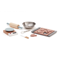 Sada potřeb a doplňků na pečení v krásném dřevěném provedení pomůže v dětském bistru připravit pečené cukroví. Sada na pečení je součástí ucelené kolekce dřevěných hraček Kids Concept Bistro. Vhodné pro děti od 3 let.