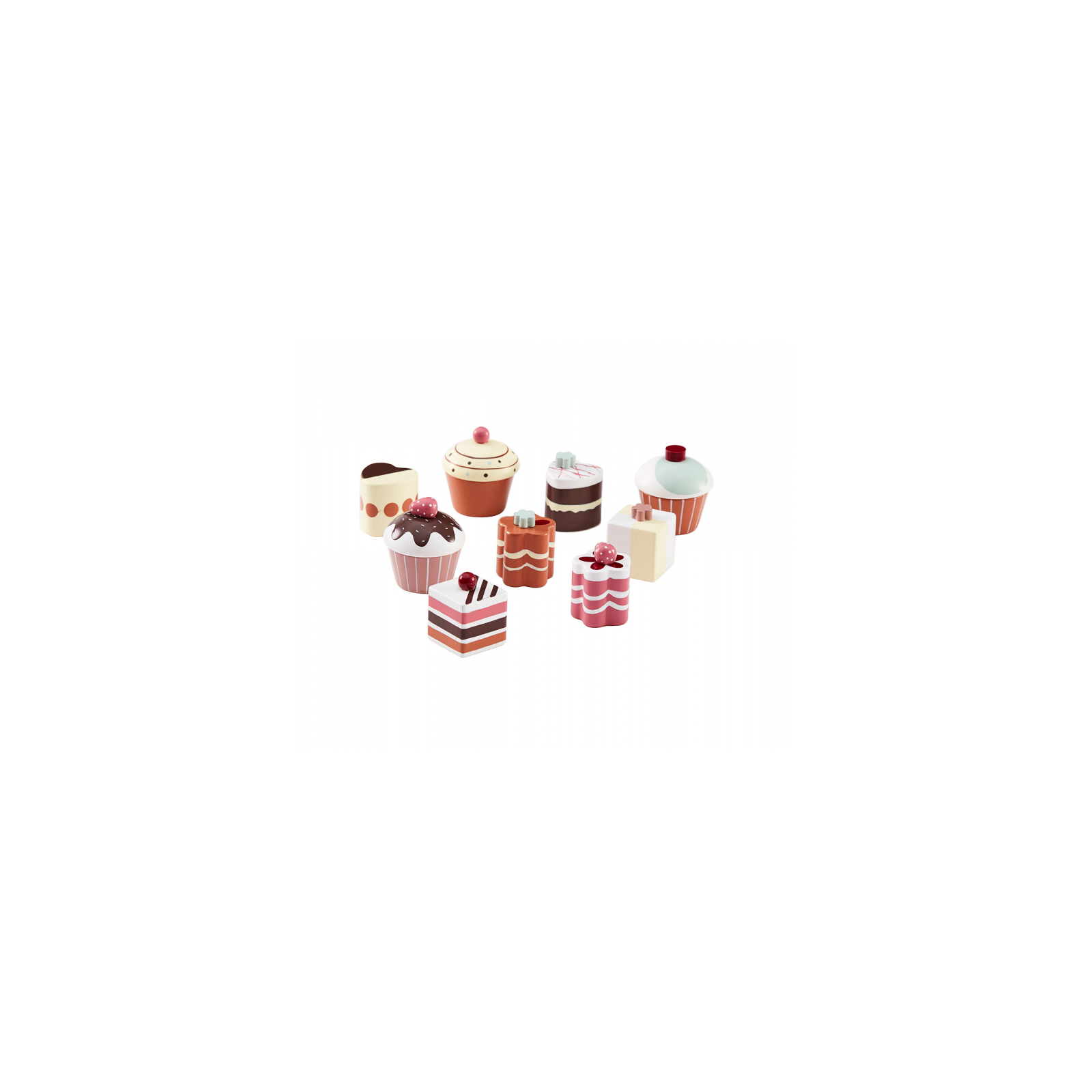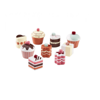 Sada 9 neodolatelných zákusků v dřevěném provedení pro dětskou párty či odpolední čaj. Zákusky je možné servírovat na patrovém stojanu z kolekce dřevěných hraček Kids Concept Bistro (stojan se prodáá samostatně). Rozměry: 4,5 x 4,5 x 3,5 cm Vhodné pro děti od 3 let.