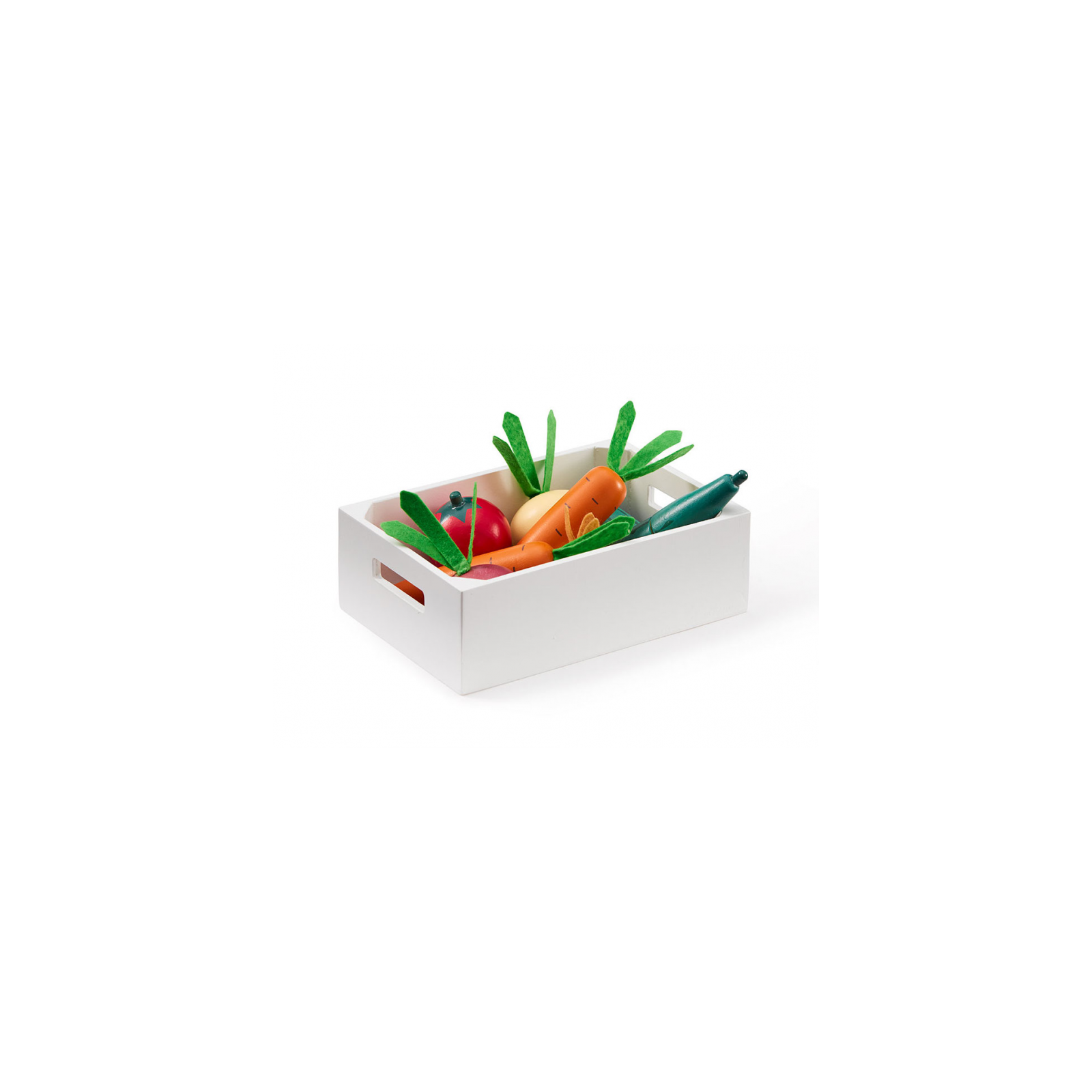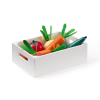 Bedýnka se zeleninou v dřevěném provedení obsahuje mrkev, rajče, tuřín, cibuli, červenou řepu a okurku. Okurka má dvě části spojené suchým zipem, aby mohla být rozkrojena pro použití. Bedýnka je součástí ucelené kolekce dřevěných hraček Kids Concept Bistro. Rozměry: 18 x 12 x 5,5 cm Vhodné pro děti od 3 let.